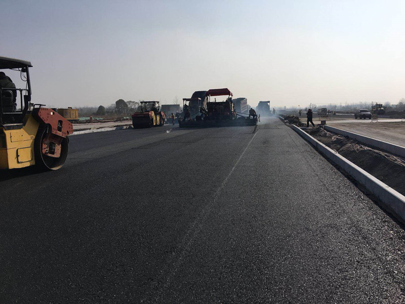 环城东路开始摊铺快车道底层沥青