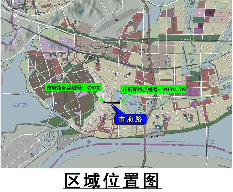 市府路改造工程位于安庆市老城区中心地带,东西走向,西起集贤南路,东至湖心路,全长1314米,道路红线25米。主要施工内容包括道路工程、排水工程、绿化工程、交通工程、照明工程等。合同总造价2475.83万元,工期10个月。