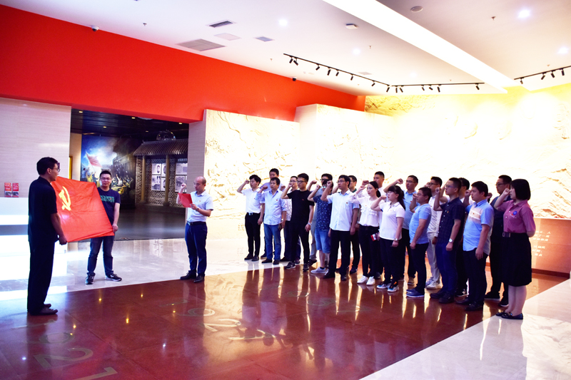 在烈士事迹纪念馆内,全体党员面向鲜艳的中国共产党党旗,重温入党誓词,进行庄严宣誓,表达了对革命先烈的诚挚敬意及为党的事业奋斗终身的坚定理想信念。随后,大家一同参观了纪念馆,通过讲解员饱含深情的讲解,感受到了革命先烈们的英雄壮举,接受了一次深刻的革命传统教育。